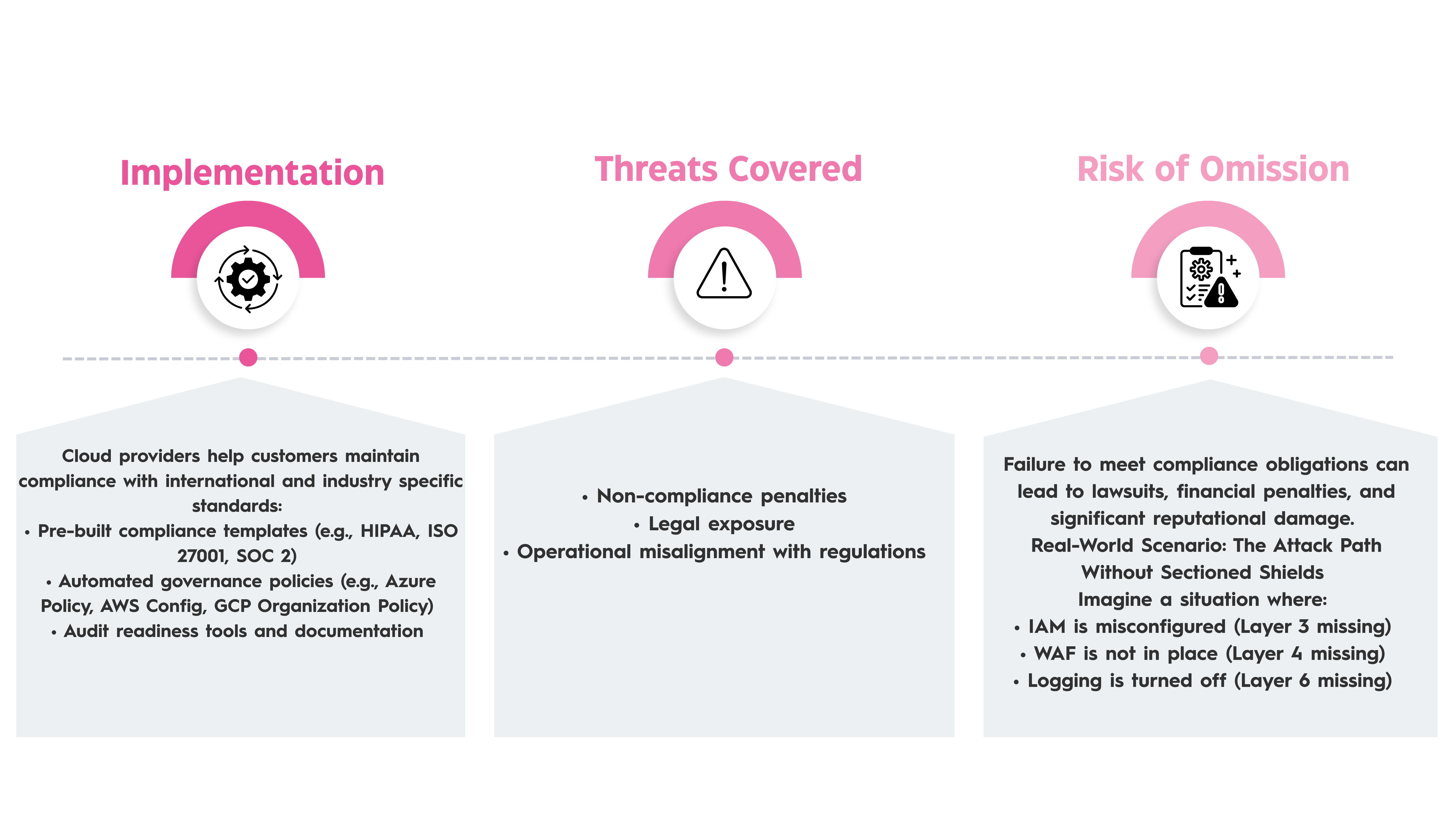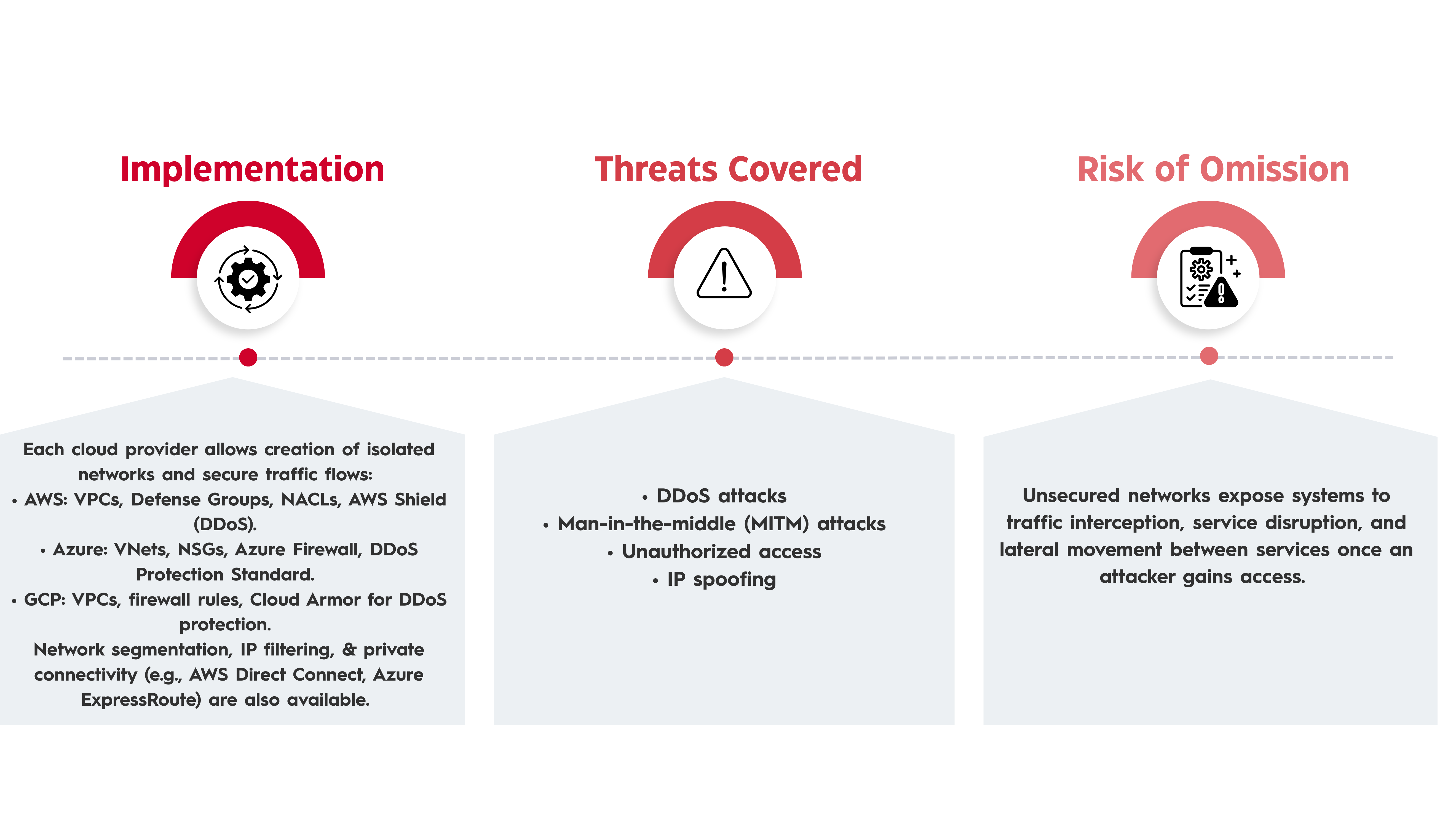 This article examines how layered security is implemented across AWS, Azure, & GCP, outlining each guard cover, specific threats it mitigates, and potential risks associated with not implementing that segment.